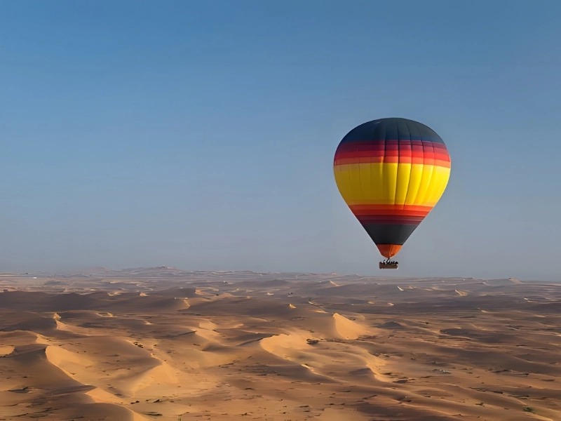 Haben Sie jemals davon geträumt, den Sonnenaufgang über einer weiten Sanddünenlandschaft zu erleben, während Sie hoch über der Wüste Dubais schweben? Sie müssen nicht länger träumen. Sie können dieses Ziel für 350 US-Dollar verwirklichen, was weniger kostet als ein Tandem-Fallschirmsprung in der Stadt. Stellen Sie sich ein endloses Meer aus roten und orangefarbenen Sandwellen vor, die im Sonnenlicht schimmern und eine surreale, majestätische Szenerie bilden, die Heimat unzähliger Wüstentiere ist, die von oben nur schwer zu erkennen sind.