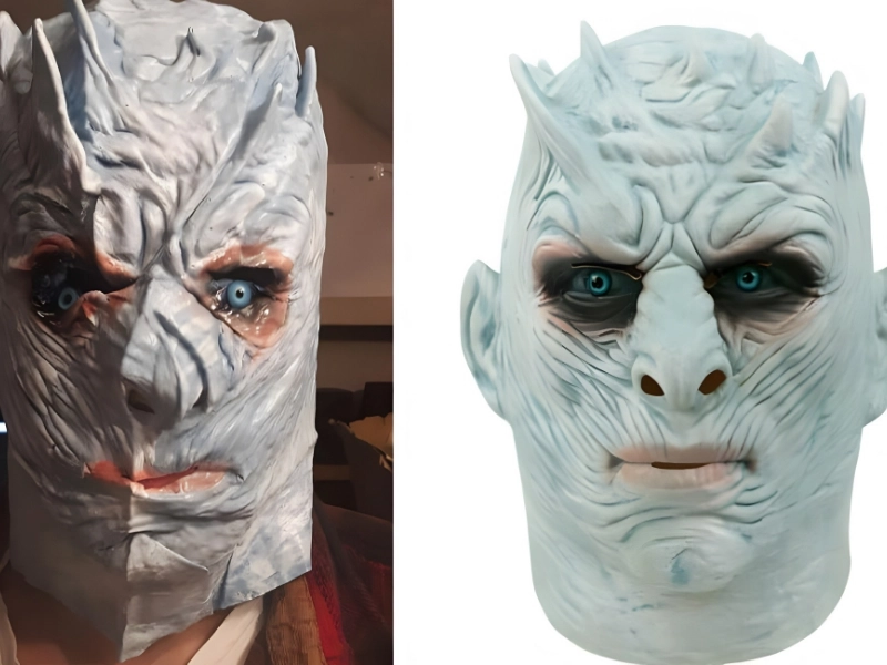 Kosten: nicht angegeben Hersteller: Unbekannt Erworben über: eBay Der Nachtkönig zählt zu den furchterregendsten Figuren im Game-of-Thrones-Universum. Viele Menschen wollten sich zu Halloween wie dieser oder wie der Clown aus "Es" verkleiden. Ein Reddit-Nutzer bestellte eine täuschend echt aussehende Nachtkönig-Maske. Geliefert wurde ihm jedoch eine papierartige Maske, die eher an einen schmelzenden Minzeis-Waffelhorn erinnerte.