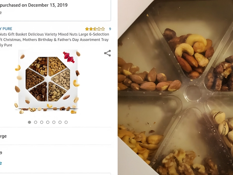 Kosten: 19,99 $* Hersteller: Proudly Pure Erworben über: Amazon Ein Amazon-Kunde hätte es nach der Lektüre der 2,5/5-Sterne-Bewertung besser wissen müssen, als einen "Holiday Nut Gift Basket" von Proudly Pure zu bestellen. Für 19,99 $ erhielt er ein Paket, das nur teilweise befüllt schien. Auf dem Tablett fehlten fast zwei Drittel der versprochenen Nüsse.