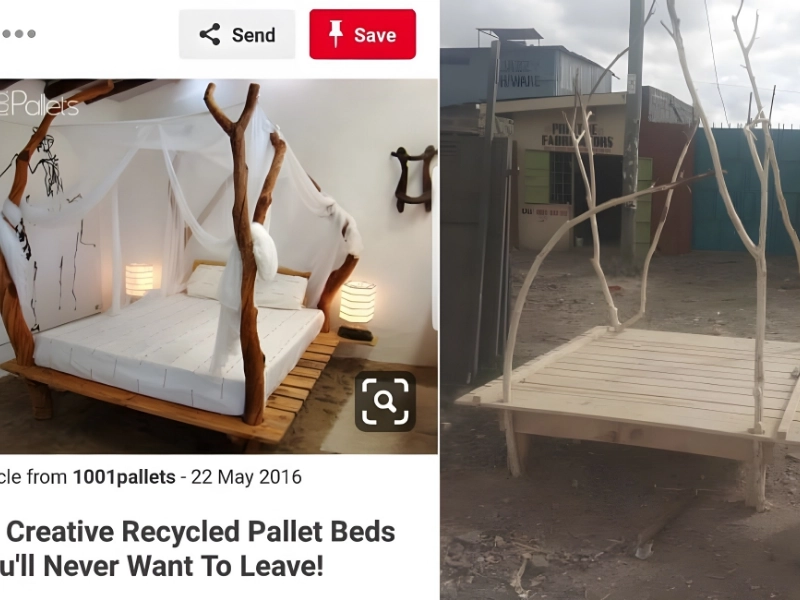 Kosten: nicht angegeben Hersteller: Unbekannt Erworben bei: Unbekannt Das "Rustic Pallet Bed Purchase Disaster" ist ein weiteres amüsantes Beispiel von Twitter. Die Schwester der Nutzerin @RebeccaKwanga kaufte ein Palettenbett aus recyceltem Holz und Stoff für ihr Zimmer. Sie erwartete ein Bett mit rustikalem, märchenhaftem Charme.