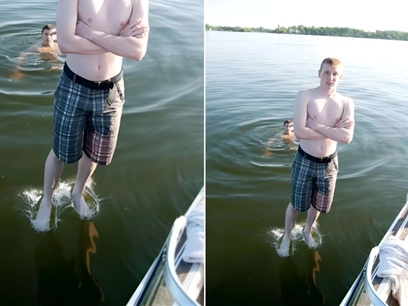 Mögliche Kamera: iPhone 12 Wo zu kaufen: Apple Durchschnittspreis: 680–780 $* Dieses Bild wird Sie sicherlich verblüffen, denn es sieht so aus, als schwebe dieser unglückliche Schwimmer auf dem Wasser. Die kreative Methode, mit der diese Aufnahme entstanden ist, ist beeindruckend, auch wenn wir alle wissen, dass es sich hier nicht um ein übernatürliches Phänomen handelt.