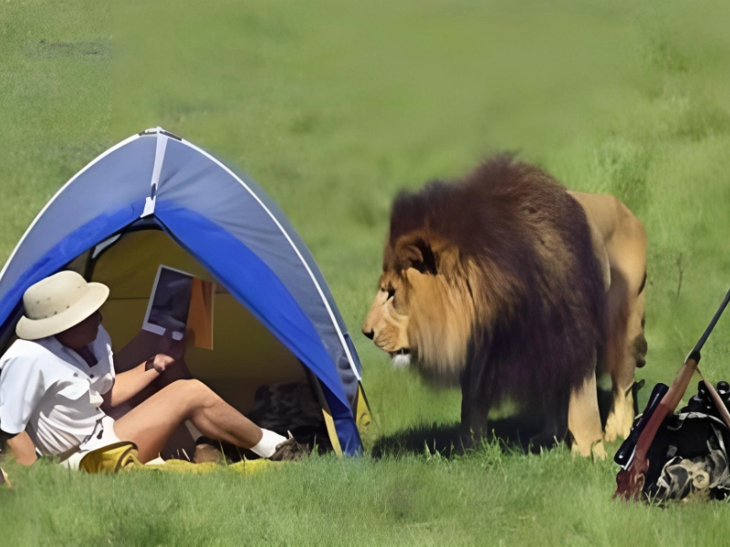 Mögliche Kamera: Sony A9 II Kaufort: Best Buy Durchschnittspreis: 4.500 $* Der Fotograf konnte sich zweifellos glücklich schätzen, nicht das Ziel dieses heimtückischen Löwenangriffs gewesen zu sein. Dieser Jäger (unsere Annahme basierend auf dem gewehr mit Zielfernrohr) lag in seinem Zelt, als ein Löwe das letzte Lachen hatte.