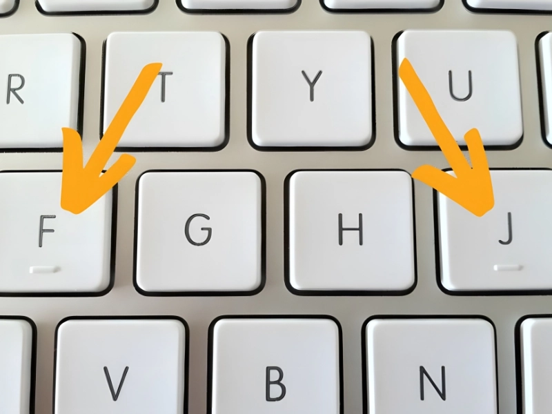 6. Die Erhebungen auf den Tasten „F“ und „J“