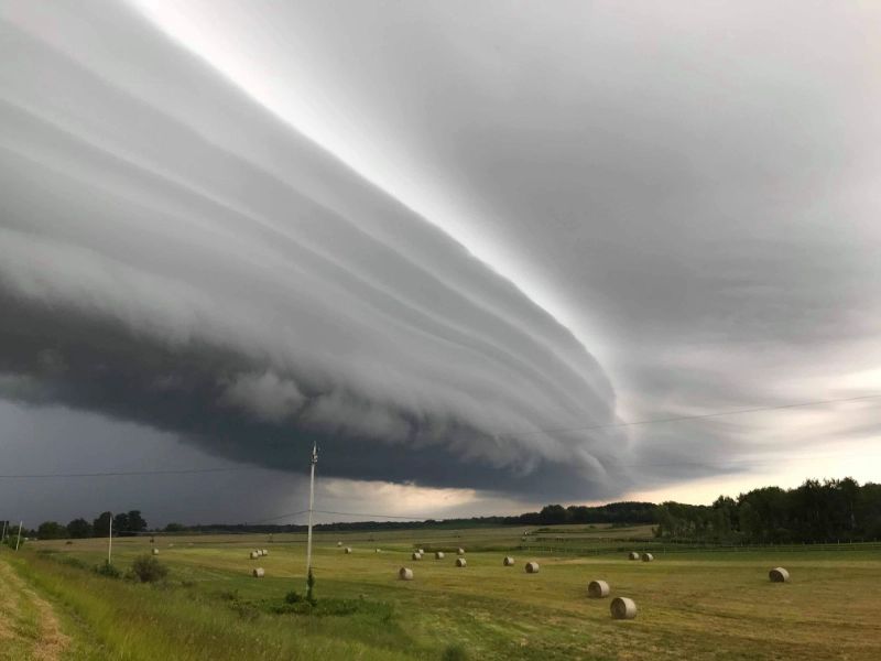 L’émergence d’un nuage mural est un signe majeur et généralement menaçant que le développement d’une tornade pourrait être proche. Un nuage mural est une diminution localisée, cohérente et généralement soudaine de la base sans pluie d’un orage. Il se produit généralement dans la zone du courant ascendant le plus fort à l’intérieur d’un orage supercellulaire, le type le plus susceptible de générer des tornades. Généralement observés du côté sud ou sud-ouest de la tempête dans l’hémisphère nord, les nuages muraux se reconnaissent à leur aspect abaissé caractéristique, qui ressemble souvent à un auvent sombre et menaçant sous le nuage d’orage principal. Ce qui rend les nuages muraux particulièrement préoccupants, c’est leur rotation. Un nuage mural en rotation est un très bon indice qu’une tornade pourrait se développer. Le fort courant ascendant à l’intérieur de la tempête aspire l’air chaud et humide vers le haut et le force à tourner. Finalement, cette action de rotation peut se resserrer et s’étirer vers le bas, générant potentiellement une tornade. Bien que leur apparition doive toujours être prise au sérieux, tous les nuages muraux ne provoquent pas de tornades. Si vous voyez un nuage mural, surtout s’il tourne, vous devez surveiller attentivement la situation et être prêt à trouver un abri rapidement. Indicateur clé dans leurs prévisions et rapports de tornades, les observateurs météorologiques et les chasseurs de tempêtes s’appuient souvent sur les observations de nuages muraux. Reconnaître un nuage mural peut donner au citoyen ordinaire de précieuses minutes supplémentaires pour se mettre à l’abri avant qu’une tornade potentielle ne frappe.