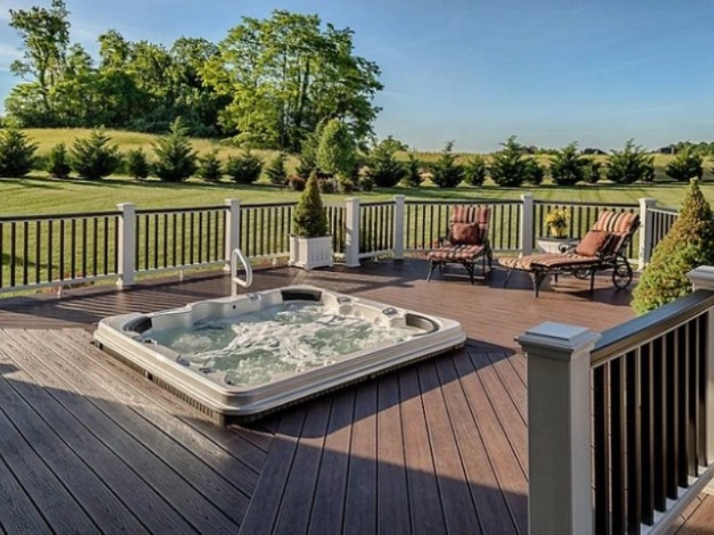 Le jacuzzi sur une terrasse d'été est particulièrement agréable.