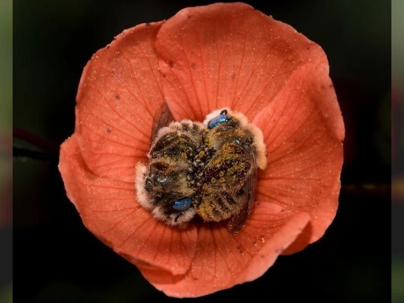 Les abeilles font fréquemment de petites siestes à l'intérieur des fleurs.