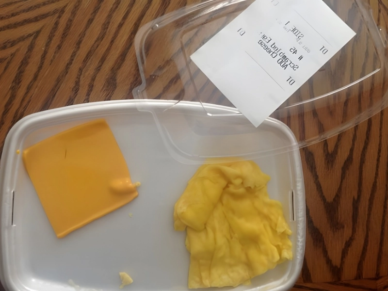 Commande passée : Inconnue Prix moyen de la commande : 2 à 4 $. Il est courant d'associer des œufs brouillés avec du fromage, ce qui est tout à fait logique. Après tout, sans fromage, les œufs peuvent sembler fades. Un client de fast-food, après avoir commandé un menu petit-déjeuner classique et demandé à « ajouter du fromage », a eu une mauvaise surprise.