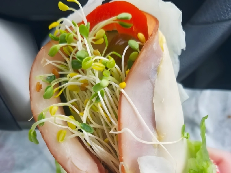 Commande passée : Inconnue Prix moyen de la commande : 5 à 7 $. Un utilisateur de Reddit pensait commander une wrap saine à la dinde et aux germes de soja. Mais ce qu'il a reçu était un peu excessif. La prétendue wrap consistait en une portion généreuse de germes au centre, enveloppée uniquement de tranches de dinde servant de « pain ». Aucune galette ou pain n'était présent. Le choix healthy était presque trop healthy.