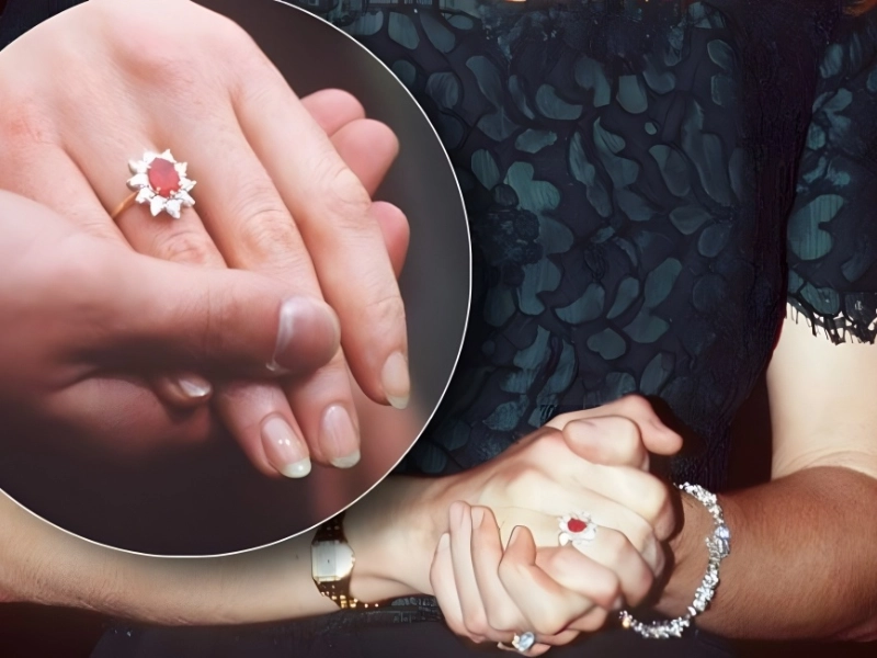 Portée par : Sarah Ferguson Depuis 1986, propriétaire Estimation de valeur : 78 000 $ Le prince Andrew estimait que sa fiancée Sarah Ferguson méritait une bague fraîchement créée, il a donc choisi de ne pas demander à sa mère de lui prêter un trésor familial. Rompant avec la tradition, Andrew a acheté une superbe bague en rubis de Birmanie, ornée de dix diamants sur un fin anneau d’or jaune, suivant les traces de son frère Charles. Ce geste audacieux reflétait son désir d’offrir quelque chose d’unique.