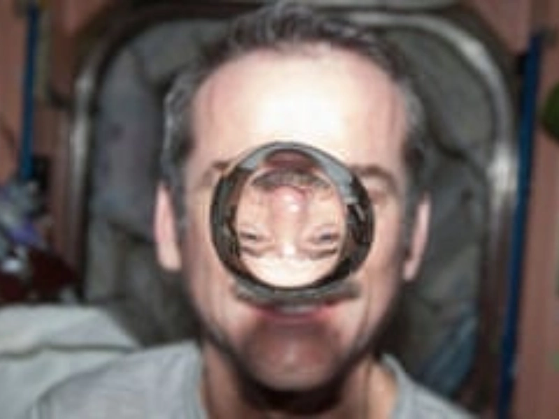 Dans le nœud Unity de la Station spatiale internationale en 2013, l’astronaute de l’Agence spatiale canadienne Chris Hadfield, ingénieur de vol de l’Expédition 34, observe une bulle d’eau flotter librement entre lui et la caméra. Crédit image : NASA/Reuters. Publier sur Facebook Publier sur Twitter