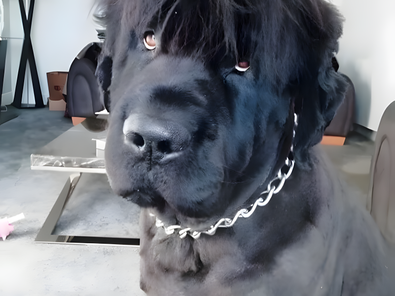 Avez-vous déjà imaginé à quoi ressemblerait un Terre-Neuve avec une frange ? Ou n'importe quel chien, d'ailleurs. C'est une vision plutôt rare. À en juger par son air, ce toutou n'avait jamais connu cela auparavant et le résultat ne semble pas lui plaire. Alors qu'on lui a laissé toute sa crinière sur la tête, le reste de son corps est intégralement tondu.