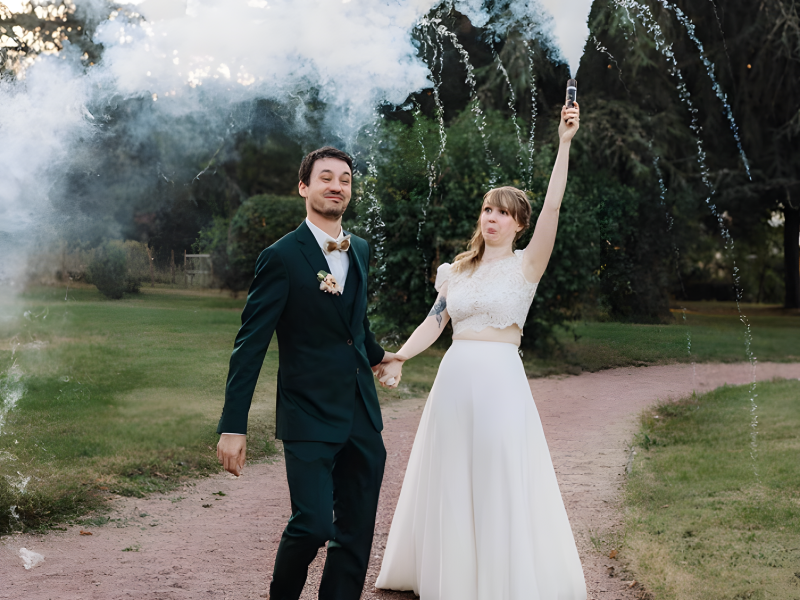 L'atmosphère était électrique alors que la cérémonie de mariage atteignait son apogée, et la mariée se tenait au centre de tout cela, les yeux écarquillés de stupéfaction. Quelques instants auparavant, un dispositif de fumée pyrotechnique avait été activé, remplissant l'air de couleurs vives et de nuages tourbillonnants qui dansaient autour d'elle. Cette démonstration inattendue était destinée à créer un décor magique pour le premier baiser des mariés, mais la mariée n'avait pas anticipé une entrée aussi théâtrale. Alors que la fumée l'enveloppait, elle a ressenti un flot d'émotions : excitation, surprise et une pointe d'anxiété. Les teintes brillantes et les crépitements de l'appareil ont ajouté une touche exaltante au moment, captivant non seulement elle, mais aussi les invités qui ont poussé des exclamations de ravissement. Le photographe, saisissant l'opportunité, a capturé l'expression étonnée de la mariée sur fond de brume colorée, s'assurant que cet instant unique serait immortalisé dans leur album de mariage. À cet instant, la mariée a réalisé que son jour spécial était unique en son genre, rempli de surprises inattendues qui le rendraient véritablement inoubliable.