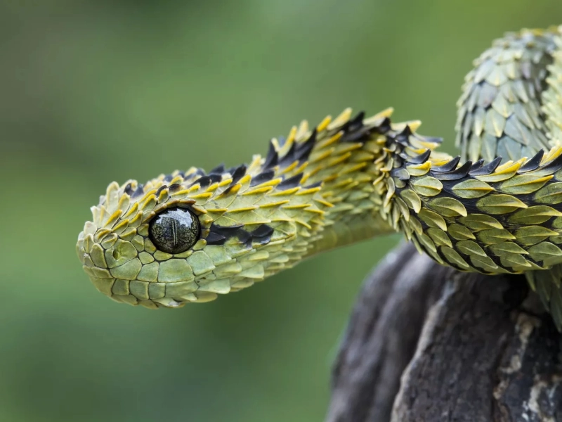 8. キールドブッシュバイパー:アフリカ熱帯雨林の有毒な美しさ