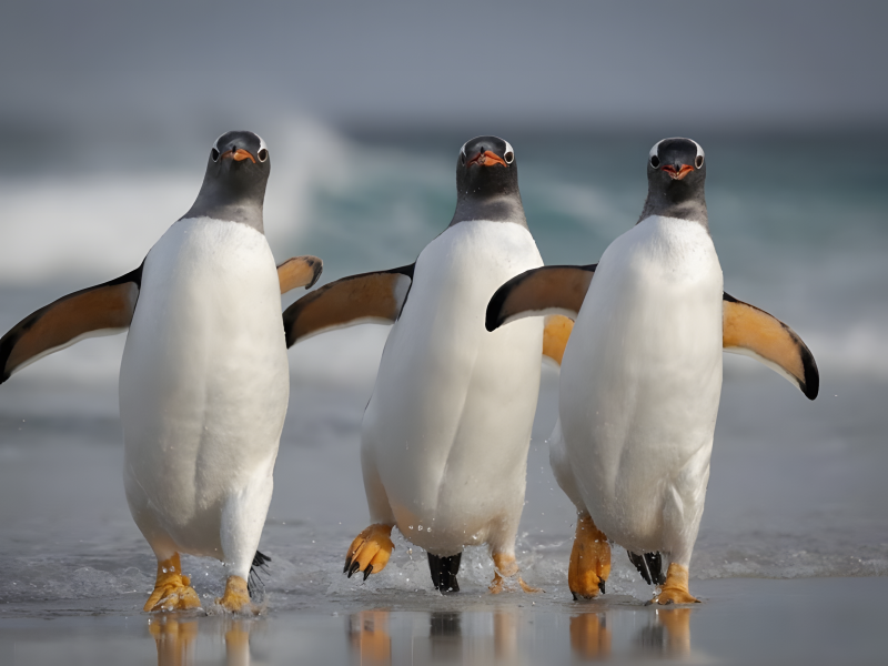 ペンギンは、彼らの comical なよちよち歩きだけでなく、彼らのユニークな発声でも知られています。グループでは、彼らの奇妙な太鼓のような音は、陽気であると同時に魅力的な音のシンフォニーを作り出します。彼らの風変わりな行動は、彼らを観察する最も楽しい動物の1つにします。