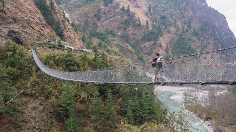 全長約115メートルで、橋は目眩がするほどの高さに吊るされています。外部者には不安定に見えるかもしれませんが、住民と動物は容易に渡ります。橋はトレッカーにとってのハイライトであり、山々と谷々の素晴らしい眺めを提供します。