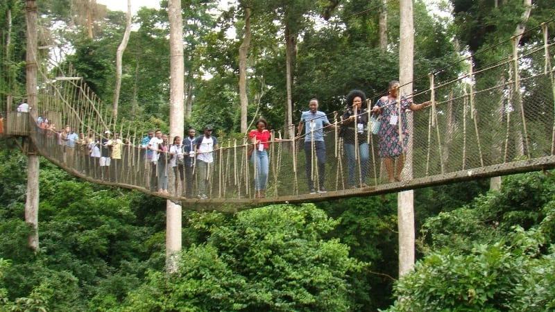 1995年に建設されたキャノピーウォークは、観光と研究の両方のために設計されています。訪問者は鳥、蝶、時にはサルや象を発見することができます。早朝が野生生物の観察と霧深い森林の上の日の出の眺めに最適です。