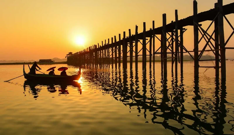 橋は美しい眺めを提供し、特に日の出と日没時が最高で、写真家のお気に入りのスポットです。そのシンプルなデザインと歴史的な魅力が、ミャンマーの文化と回復力の象徴となっています。
