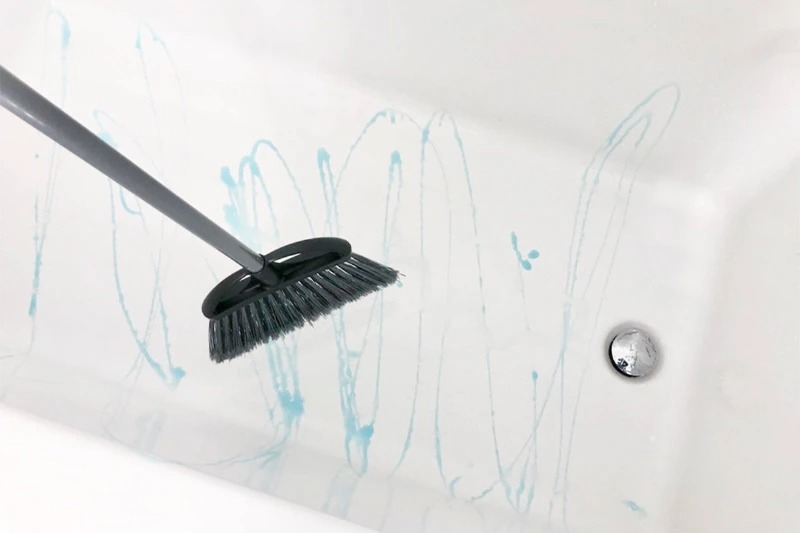 浴槽の掃除は腰を痛める重労働ですが、そうする必要はありません。手と膝をついてこする代わりに、浴槽の表面にたっぷりと食器用洗剤をスプレーし、清潔なほうきを手に取ってください。長い柄はすべての隅に楽に届き、ブラシは石鹸カスや汚れを分解するのに役立ちます。浴槽がきれいになるまで円を描くようにこすり、その後水で十分にすすぎます。この方法は腰や膝を守るだけでなく、浴槽をピカピカに清潔にし、爽やかな香りを残し、厄介な仕事を簡単な作業に変えます。