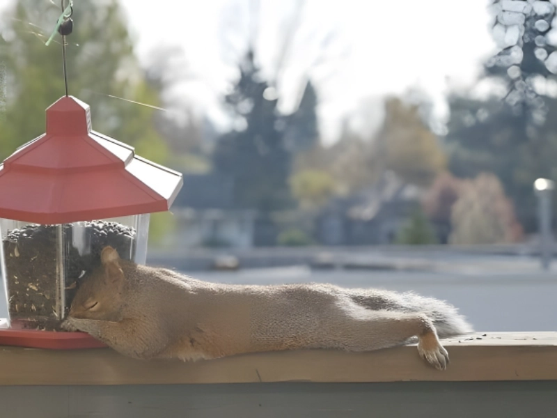 多くの人々はリスを鳥の餌箱から遠ざけようとしますが、空腹のリスにおやつを拒むのは難しいものです。この女性は小さな訪問者に食事を楽しませることに決め、すぐ後に、リスは満足して満腹になり、眠りに落ちました。
