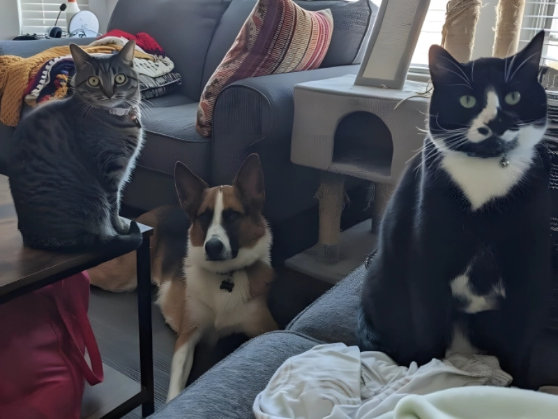 動物は飼い主の変化を感知する驚くべき能力を持っています。この写真では、家のペットたちが飼い主の周りに集まり、彼女が分娩初期段階であることを感知しました。