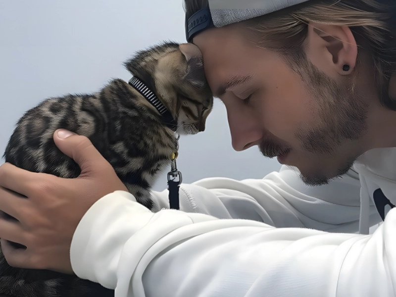 この瞬間の愛とケアは否定できず、子猫の甘い顔がすべてを物語っています。