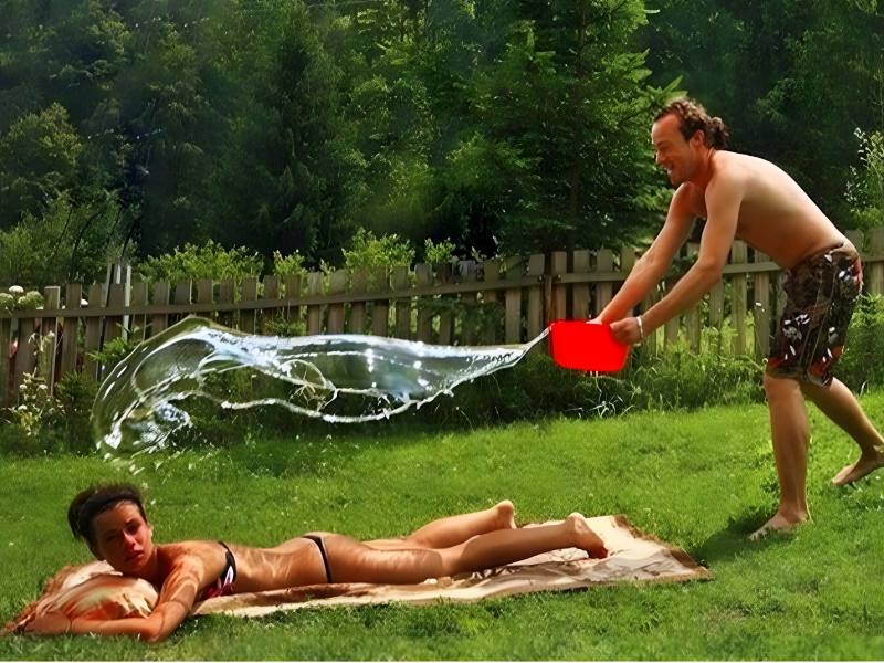 夏の喜びの衝撃——予期せぬひねりに驚かされようとしている喜びに満ちた顔が、これを完璧な夏の思い出にしています。太陽に照らされた光景と気ままな笑顔は完璧な一日の本質を捉えており、しかし迫り来るサプライズがたまらないユーモアの層を加えています。最高の思い出がしばしば最も予期せぬ瞬間から生まれることを思い出させてくれる写真です。