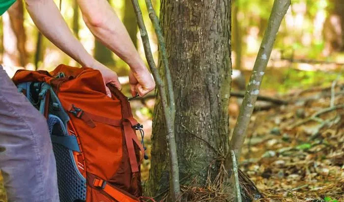 彼と駐車した車の間には2時間の歩行が待っていました。手で動物を運ぶのは安全ではありませんでした。彼は旅行用バッグから即興で柔らかい運搬具を作り、旅の間注意して中に入れました。