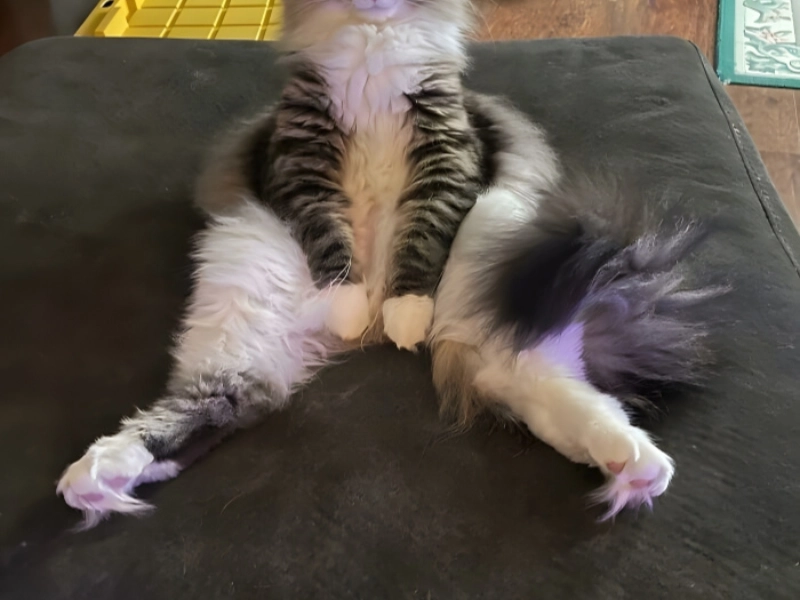 よけなさい、世界——この猫は「マンスポレーディング」の技術を後悔のない才能でマスターしました。手足を伸ばして広げられ、この猫は威厳のある自信ですべての空間を主張します。この猫の支配の表示には、表面が小さすぎることも椅子が控えめすぎることもありません。