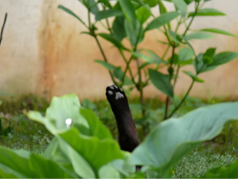 あなたの猫が草の中でリラックスしているが、それでもハイタッチをしたがるとき