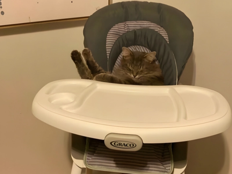 古典的な見間違いのケース!新しいベビー用品が到着すると、この猫はそれらがすべてその楽しみのための贈り物であると確信しています。ハイチェアから柔らかいベビー毛布まで、すべてが新しい遊び場または休息場所になります。結局のところ、猫の心の中で、世界は彼らとその気まぐれを中心に回っています。