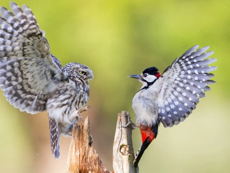二羽の鳥が翼幅を compare するという遊び心のある contest が unfolds します。この光景は友好的な競争と相互の admiration で満ちています。広げられた翼は強さと美しさの symbol であり、お互いに対する鳥たちの curiosity は both amusing and endearing です。この画像は、競争が健康的であり得ることを思い出させてくれます。特にそれが尊敬と camaraderie に根ざしているときには。
