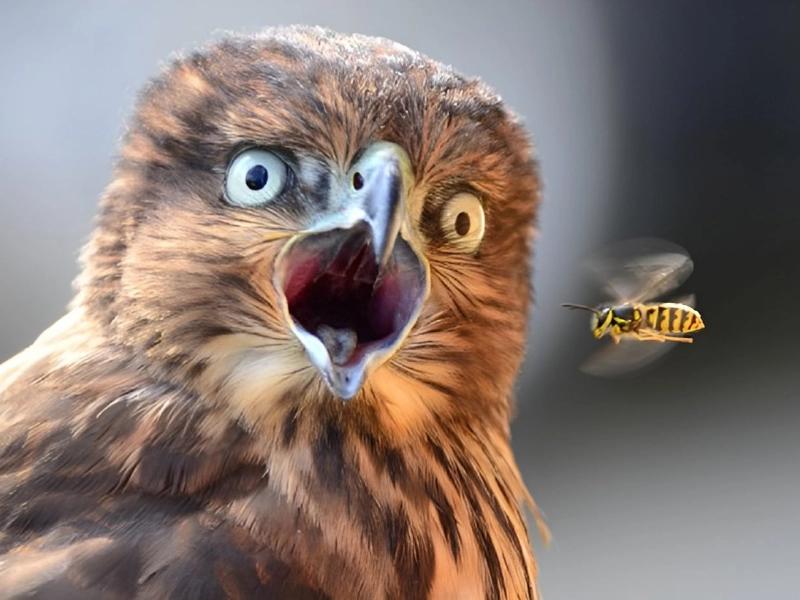 スズメバチと鳥の間で dramatic な race が unfolds し、それぞれが目的地に first になることを determined しています。緊張と速度は single frame に捉えられ、anticipation で息をのむようにさせます。この画像は、動物界全体に見いだされる relentless drive と competitive spirit への testament です。