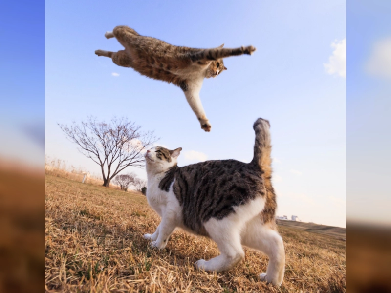 これらの二匹の子猫は、優しいしかし活気に満ちた試合に locked まるミニチュアのレスラーのように見えます。彼らの小さな足と決意に満ちた表情は、両方とも fierce で愛らしいです。遊び心のある咆哮をほとんど聞くことができ、彼らが転げ回り飛びかかる素早い動きを見ることができます。この画像は子猫時代の本質——無限のエネルギー、際限のない好奇心、そして悪戯を共にするパートナーを持つ喜び——を捉えています。