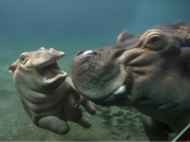 カバの母と子の間の絆には、否定しがたいほど心動かされるものがあります。この心温まる写真では、そのペアが優しい一体感の瞬間に捉えられており、彼らの巨大な体が愛情と安全のジェスチャーで密着しています。母親の保護的な存在と子の信頼は、家族愛の感動的な肖像を作り出しています。その大きさと強さにもかかわらず、カバは深く社会的な動物であり、彼らの関係は触れ合い、コミュニケーション、そしてケアの上に築かれています。このイメージは、私たちに見かけを超えて見ることを促し、最も手ごわい生き物の中にさえ存在する優しさを評価するように誘いかけます。